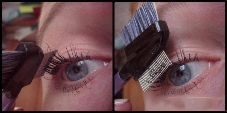 To achieve the desired effect, you need to comb the cilia immediately after applying the mascara, while it has not yet dried, this will allow you to carefully separate them without harming the hairs themselves. You can not only separate the stuck together eyelashes, but also remove excess carcass from them, as well as lumps formed. Do not wait until it dries, because the procedure will not succeed.