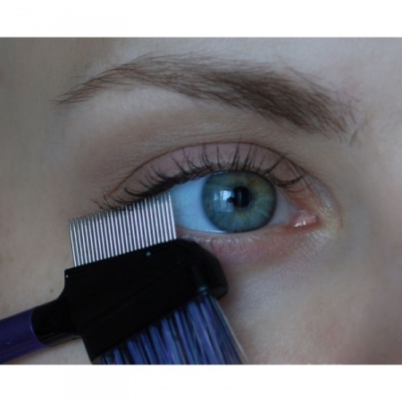 The iron comb has thin and smooth teeth, which allows you to use it for everyday makeup, because it perfectly spreads the glued cilia without collecting mascara. It can also be used to shape eyebrows.