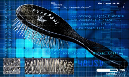 - Pure Paws massage brush is the choice of professionals. Its teeth are made of copper, and also nickel-plated on top. Copper is responsible for strength, and nickel eliminates static electricity. The brush is made of wood, is lightweight and easy to comb.