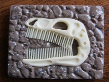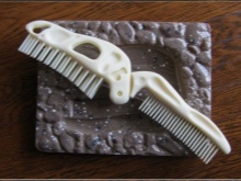 - The double comb in the form of an animal's skull looks quite interesting and even is very functional. The product is complemented by a special stand on which it looks like a historical find - the bones of the fossil.