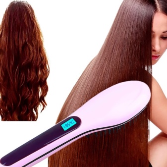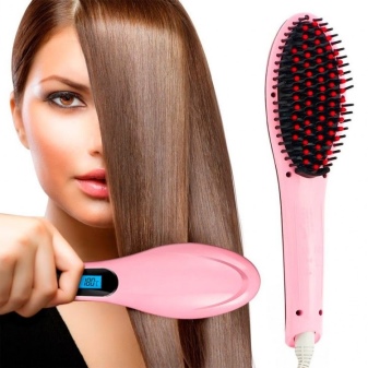 - Very good idea, suitable for leveling, comb-straightener. The product works from the network, some of them straighten hair by heating the teeth, while the effect of others is explained by the effect of ions on the hair structure.