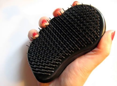 Recently, a lot of hype has risen around popular combs without a handle, which have a convenient shape for the palm of your hand, so they do not slip and do not fall. The products are equipped with a large number of small, rather soft, teeth, which not only carefully comb, but also untangle the hair.