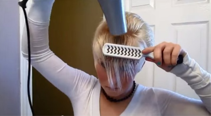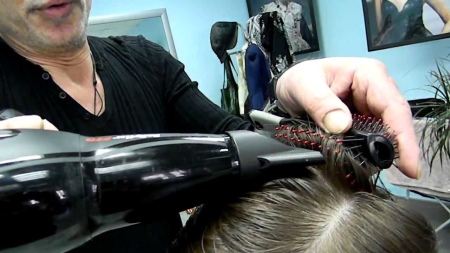 - It is necessary to make a parting, take a lock and comb it down about two or three centimeters. Next, the hair needs to be raised and thoroughly dried with a hairdryer, while the flow of hot air should not go very close.