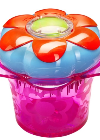 A baby comb that was created specifically for little princesses. There can be no doubt, because this is a comb in the form of a flower. She also has a deep lid, which stores rubber bands for hair.
