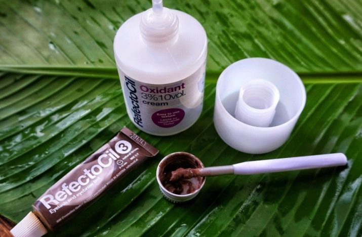 - Refectocil. Another product that does not contain ammonia. If we study the composition in more detail, it will become clear that the manufacturer did not spare the time and money to develop the ideal complex. There are minerals and plant extracts that have a positive effect on eyelash growth. The kit includes everything necessary for coloring, including disks for eye protection, containers, paint, emulsion, brush for applying.