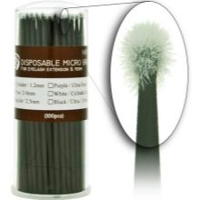 Microbrushes are used for different purposes. It all depends on their size. Brushes can be from 1 to 3 mm in diameter. Large ones are usually used for eyebrows. When working with cilia, maximum accuracy is needed, therefore, the size of the tool should be smaller.