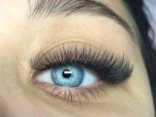 At the request of the client, the extended eyelashes can be decorated with rhinestones, feathers, sparkles, beads, and have “interspersed” colored hairs.