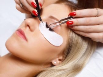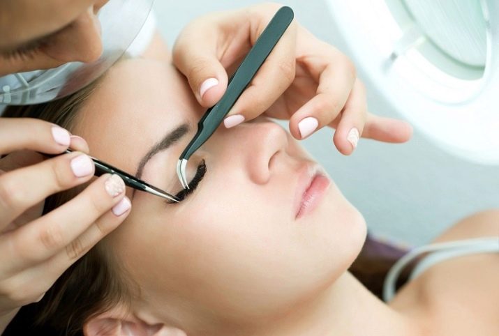 - The fastening of artificial material occurs at a distance of about 0.5 mm from the upper eyelid - only if this interval is observed after the procedure is completed, the client will not experience discomfort during wear.