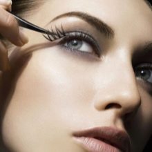 - Attaching the beam to the eyelash. With tweezers, the master moves the eyelashes, and with the other holds the material. Artificial products are attached in a single beam in the direction from the temple to the bridge of the nose.