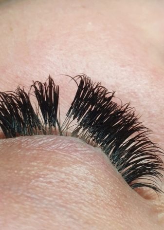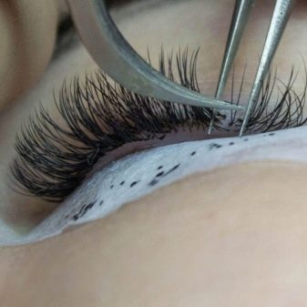 - drops of glue will be clearly visible on the surface of the cilia and skin of the eyelids;