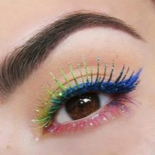 You can decorate natural and artificial eyelashes with sparkles and shimmer. Mascaras with the presence of shine in them are also popular, they are not only a classic black shade, but also in other colors.