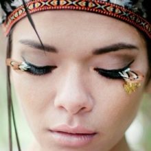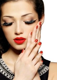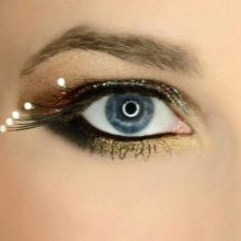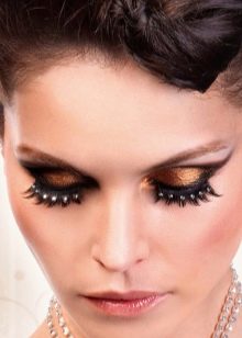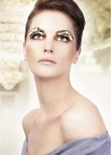 You can decorate eyelashes with rhinestones, colored hairs and miniature beads, as well as in rare cases, sparkles can be used in everyday life. While feathers, large stones and flowers are probably worth setting aside for any celebration. Heavy decor will be appropriate in the case of creating a stage image, for a photo shoot, shooting a video or clip.