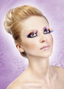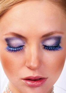 Usually for everyday life, eyelashes are decorated with miniature, barely noticeable strassesas well as using colored hair extensions. Feathers and more noticeable the stones in the best way will complement a solemn, for example, a wedding bow or an image for a prom.