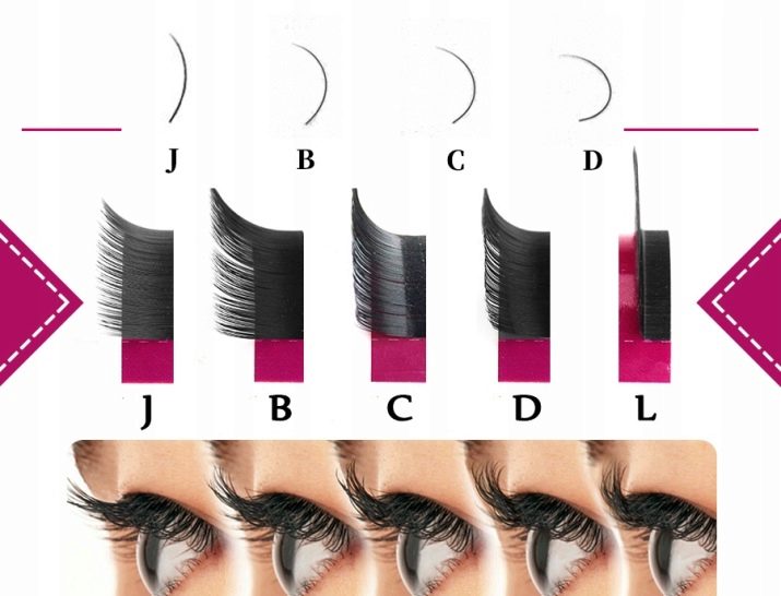 This parameter of artificial hairs, as well as length, is responsible for how the eyes will look in the future. In modern cosmetology, 8 types of bends are used.