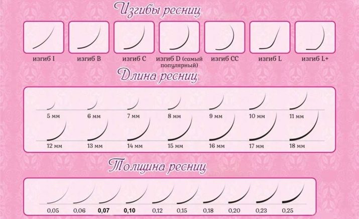 Lashmaker carefully examines the eyes of the client, determines their size, incision, landing. And only after that offers this or that method of building using artificial hairs of a certain bend. Most often, masters suggest using eyelashes with bend C. Such hairs are ideally combined with almost any appearance and easily hide possible defects.