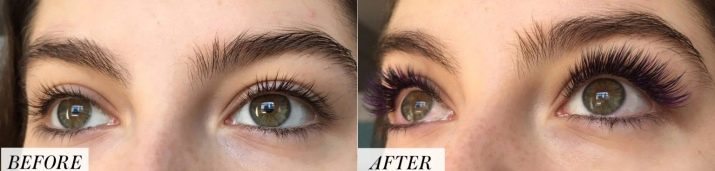 In the second case, the girl’s problem was the lack of eyelashes per se, and those that grew were small and inconspicuous. But after building the look gained depth, it became open.