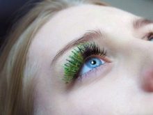 Shades of synthetic threads can be selected according to the color of the hair. For example, light brown tones are suitable for owners of light or red hair. The deep tone of green eyelashes will be red-haired to the face. Ideal for blondes are brown and gray cilia.