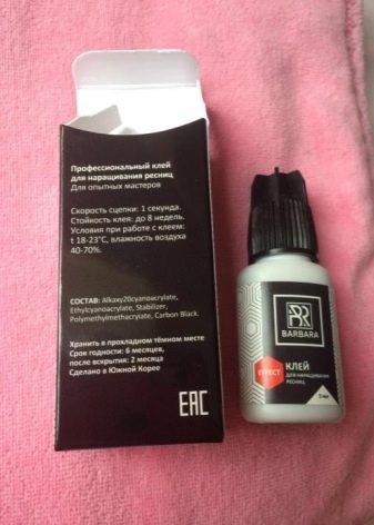 According to the masters, barbara brand adhesive adhesives deserve attention. The brand does not belong to the category of the most expensive or elite, accessible to most beginners. Low fuel consumption - up to 6 drops in both eyes, a 3 ml bottle is enough for several months.
