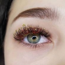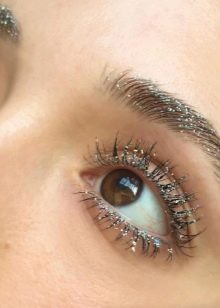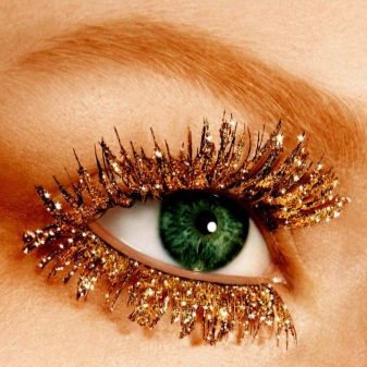 In the New Year, I want to look as attractive and impressive as possible. On eyelash extensions, you can use sequins, feathers as a decoration or choose a design with rhinestones. For artificial eyelashes with sparkles, it is best to choose a shine with mica, it will allow you to coat each cilium with an even layer, avoiding clumping. There are artificial hairs with a temporary sheen, which is washed off with ordinary soap.