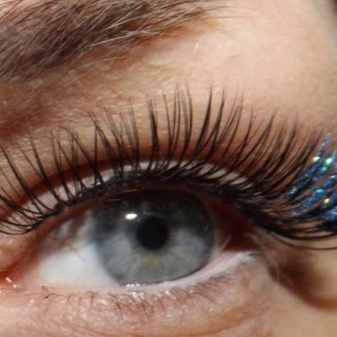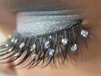 False eyelashes with rhinestones or crystals from Swarovski. Crystals or rhinestones are attached along the entire line of the eyelid or only in the outer or inner corner of the eyelid. Glue them on black or colorless glue. For decoration for several days use medical or silicone glue. Glues rhinestones need to be thoughtfully and carefully, act according to the instructions.