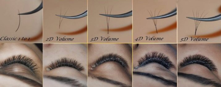In order not to be disappointed in the result, you need to correctly select the appropriate volume of eyelashes and decide what to focus on. With an emphasis on the outer corner of the eyelid, we get a feline or squirrel look, since the outer corner of the eye becomes visually elongated. With an emphasis on the middle part of the eye, a puppet effect is obtained, since the eye is visually rounded. There is a whole range of volumes: from single to 5D, otherwise called the Hollywood effect.