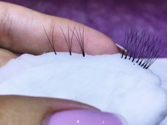 You need to carefully take a bunch of eyelashes. Adhesive is applied to its tip, and then hairs are applied to their own eyelashes.
