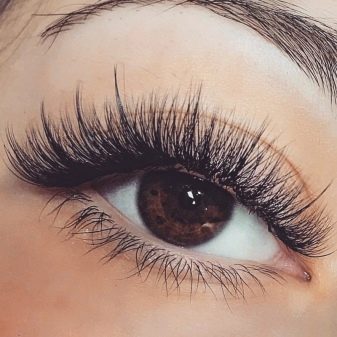 This method is very reminiscent of the classics, but with the achievement of a larger volume. In addition, close to the natural appearance of cilia, grown in this way, It is also achieved due to the different lengths of attached hairs.