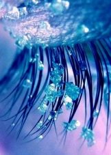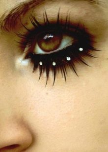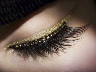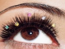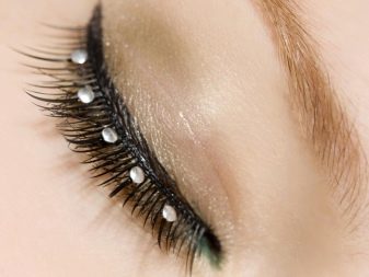 In most cases, women's eyelashes are decorated with glass or acrylic pebbles. Some prefer to resort to other interesting decorations - miniature transparent or light pebbles with beautiful tints.