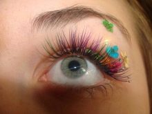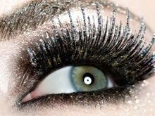 Decorating the eyes with spectacular eyelash extensions with rhinestones, You can create many different interesting effects. Ladies can form both a natural and a puppet look. Some fashionistas prefer the simple effect of painted cilia.