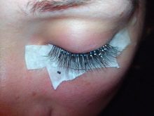 Dressing eyelashes with rhinestones is presented in the next video.