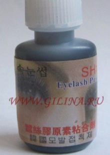 - Gel. It is a safe glue, it does not cause allergic reactions and is not toxic. The solution dries in a short time. It is not subject to rolling, does not dry out the delicate and vulnerable skin of the eyelids. This product is sold in black and white. When solidified, the composition becomes transparent. This type of glue is characterized by a liquid consistency, therefore it is characterized by a lower level of adhesion to the fibers.