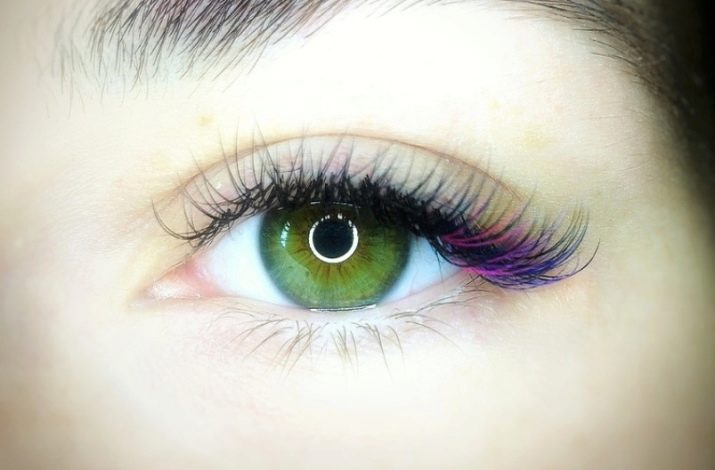 - for holding photosets or festive events, the practice of building colored cilia in the corners of the eyes, as well as decoration with rhinestones, feathers.