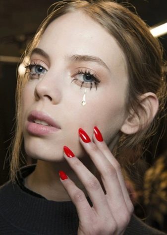 In everyday life, women are in no hurry to accept a fashionable novelty, since the “spider legs” are ideal for creating an unusual image, but it is very inconvenient to go to work with them and do everyday chores. This is perfect for a party to surprise guests.You can use the technique in art when you want to create an unusual image. Glued cilia are sometimes supplemented with rhinestones or colored, which looks very unusual and colorful.