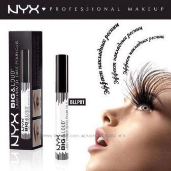 - White primer from NYX. Suitable for lengthening and separating even the shortest cilia, as well as to give them a noticeable density and volume. The product has caring properties. The issue price is about 600 rubles.