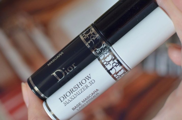 - Diorshow. The composition of the product is enriched with special oils that gently care for the eyelashes, making them visually thicker, fuller and denser. The primer enhances the shade of the mascara applied over it, making the eyelashes shiny and divided.