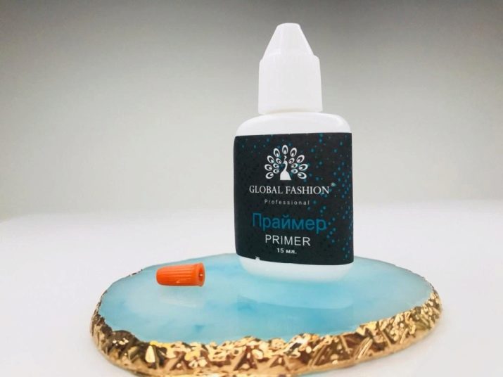 - Global Fashion Primer. This primer is specially designed to cleanse eyelashes from makeup residues, as well as for degreasing them immediately before the extension procedure. The composition of the product is completely safe for native eyelashes, can be used even for the most sensitive eyes. Intended only for professional work. On average, a bottle is enough for 10 procedures. The price is about 500 rubles.