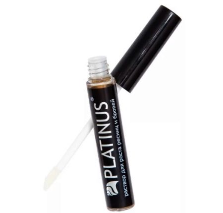 - Platinus lashes to stimulate the growth of eyelashes and eyebrows. This care product is based on oil. The bottle resembles mascara, the product is convenient to apply thanks to the brush. Serum contains such natural components as humic acid, castor oil, and pine needles extract.The tool is hypoallergenic, so almost everyone can use it, without fear of unpleasant reactions. In accordance with the instructions, the application of the composition is worth doing daily. Serum does not require rinsing.