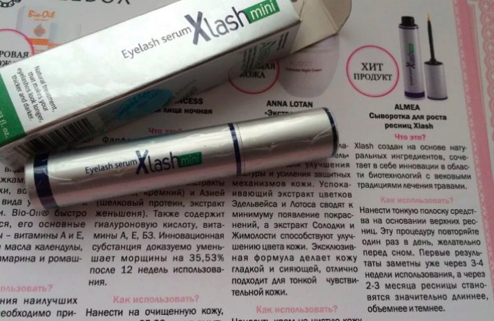 - Almea Xlash. This product is characterized by its natural composition, the presence of natural components represented by plant extracts. Since no chemical elements are present in this serum, it is considered absolutely safe for human skin and eyes. Almea Xlash stimulates the active growth of eyelashes, and also improves the structure of existing hairs. As a result of regular use of serum, an increase in the length and number of cilia occurs.