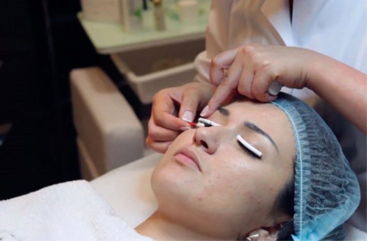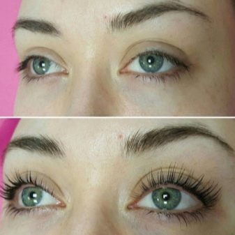 Feature of this cosmetic procedure is the ability to give eyelashes more volume, density and nourish them with beneficial substances. This is due to a special tool that is applied to eyelashes fixed in a curved position. The advantage of this operation is not only strengthening, but also obtaining the effect of longer, thicker eyelashes. Often, lamination is combined with dyeing, which allows you to get a rich color.