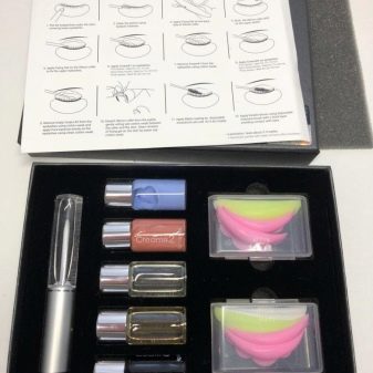 Lash industry does not stand still. Manufacturers produce special kits designed to give cilia splendor and volume. Beginners can purchase the necessary tools, as well as serums and coloring pigments. You can work with such starter kits not only in salons, but also at home. The kit does not include combs, wipes, rollers, applicators and adhesive tapes, therefore they should be bought additionally. Usually there is no conditioner or makeup remover. Enough of such a set of 3 times.