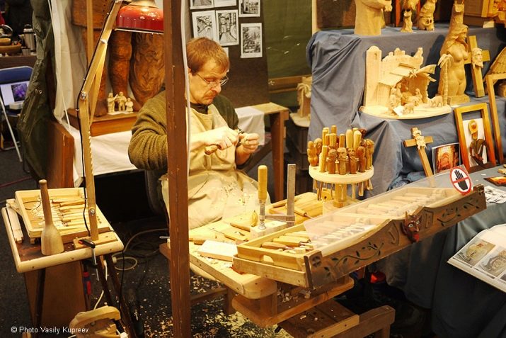 A sharp tool is used for work.Thanks to which a piece of wood immediately takes shape, then the desired shape and gradually becomes the object that the master conceived.