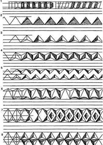 Also a very interesting element, which is based on the principle of action used when working with pegs. The distinguishing feature is only that the triangles do not have a common base, but, on the contrary, are shifted in different directions.