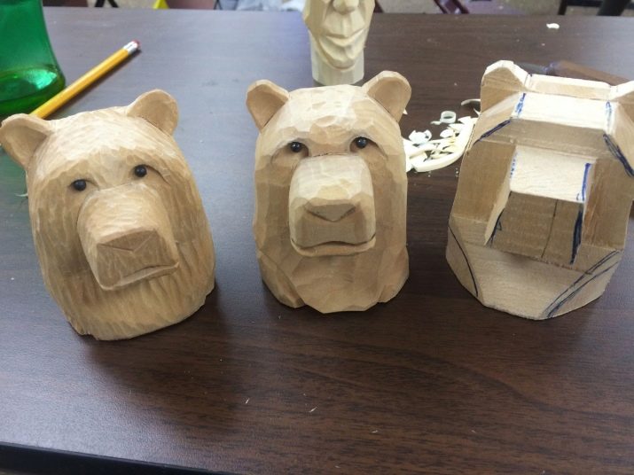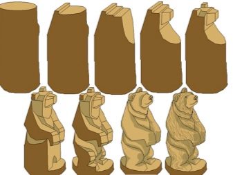 Many masters agree that the hardest thing to create is a bear's paws and head. It is especially difficult to make a head. Recommended first make a stencil for different projections: in profile, front and back. Then you will need choose a bar, which is best for the head, and on it transfer the detail contours without detail.
