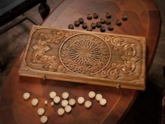 Wooden backgammon - the most popular options. Carved wooden patterns are often made. to order. The master tries to fulfill the wishes of the client as accurately as possible. Carvings can be very different, but often used geometric patterns, images of animals, birds and so on.