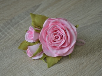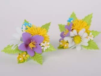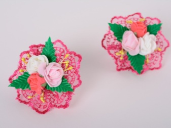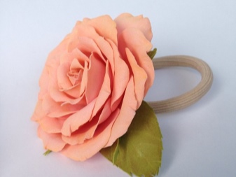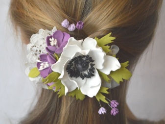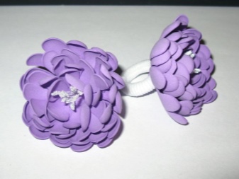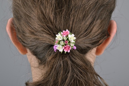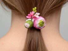 Various decorative elements are made from this material, with which elastic rubber bands are decorated. It can be not only flowers, but also berries, fruits, insects, animals. Especially these hair ornaments will appeal to little girls.