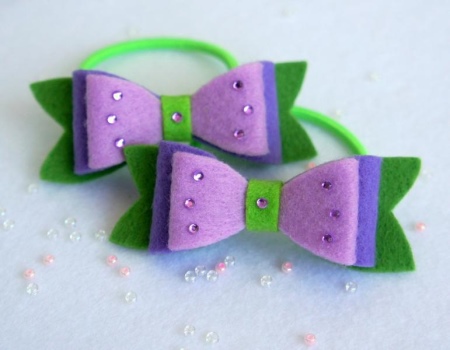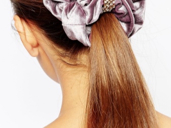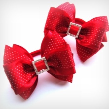 Elastics with bows are suitable for children and young girls; on older ladies, they look too infantile. Most often they are made of satin ribbons and fabrics, there are bows made of polymer clay.