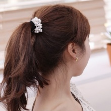 To correctly fix the elastic, separate the lock of hair, fix the first hook in it and twist the elastic around the tail, holding the lock. Then fasten the second hook, try to keep both of them below the tail. Additionally, the latch can be masked with a decorative accessory.