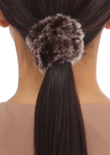 Another good option for the winter season. An elastic band with pieces of fur will look appropriate and stylish. To create, both artificial materials and natural ones are used - rabbit fur, Arctic fox, mink.