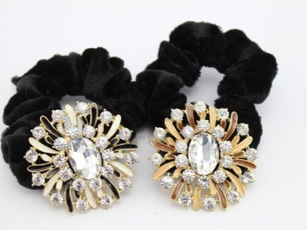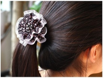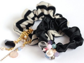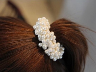 Ready-made rubber bands are decorated with a wide variety of decorative elements: embroidery, weaving, beads, beads, sequins, stones, rhinestones. For a solemn occasion, a spectacular hairpin with pendants is suitable.