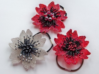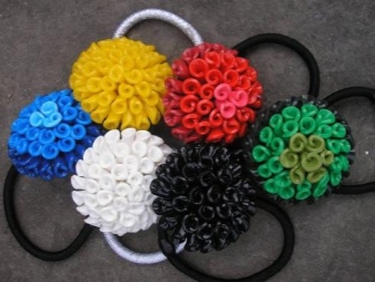 Satin ribbons of different colors are taken as a basis, beads, beads, and other decorative elements are additionally used. The most popular models are rubber bands using the kanzashi technique, satin flowers, and bows.
